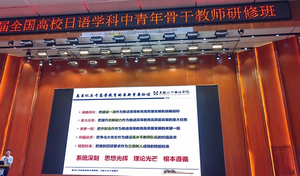 2024年7月23日-27日,第八届全国高校日语学科中青年骨干教师研修班暨2024年外研社“教学之星”大赛日语组全国总决赛在哈尔滨顺利召开。本届研讨会有教育部高等学校外国语言文学类专业教学指导委员会日语分委会、教育部高等学校大学外语教学指导委员会日语组、中国日语教学研究会、高等学校大学外语教学研究会日语分会、外语教学与研究出版社、日本国际交流基金会主办,黑龙江外国语学院承办。来自全国上百所日语专业院校的220余名教师参会研讨。